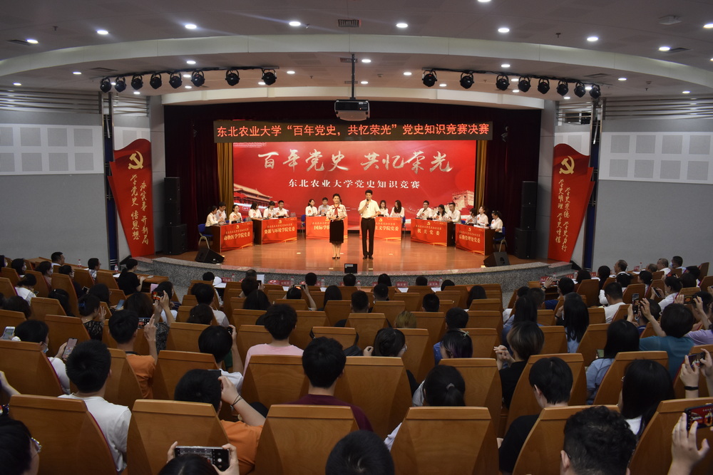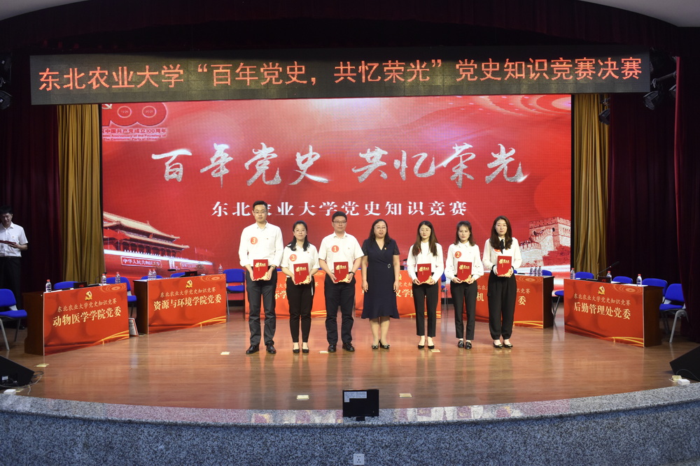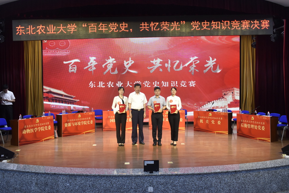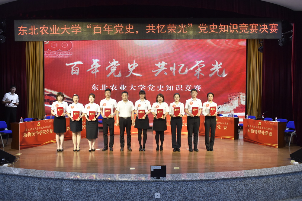 为庆祝中国共产党成立100周年,进一步推动党史学习教育走深走实,6月23日,我校在图书馆报告厅举办“百年党史,共忆荣光”党史知识竞赛决赛。校党委副书记兼工会主席庞玉红,宣传部部长吴春丽,校工会副主席杨石穿,校团委副书记高天琦,各党委(总支)书记,各参赛代表队教师代表参加会议。动物科学技术学院党委书记徐光君,生命科学学院党委书记施喜军,食品学院党委书记潘俊波,艺术学院党委书记张卫国担任党史知识竞赛评委。