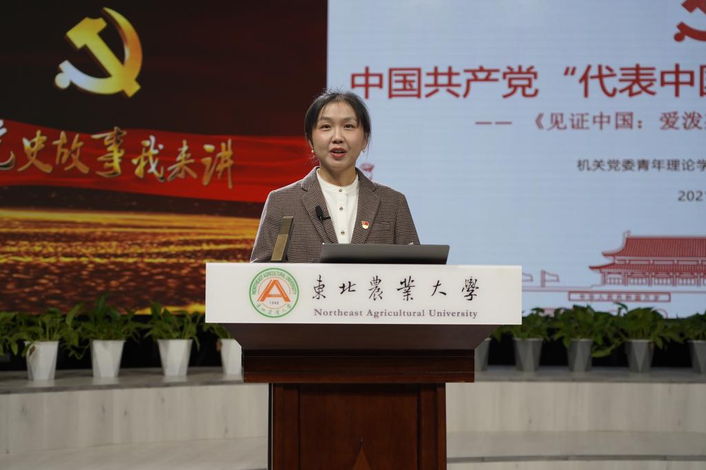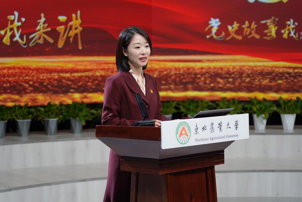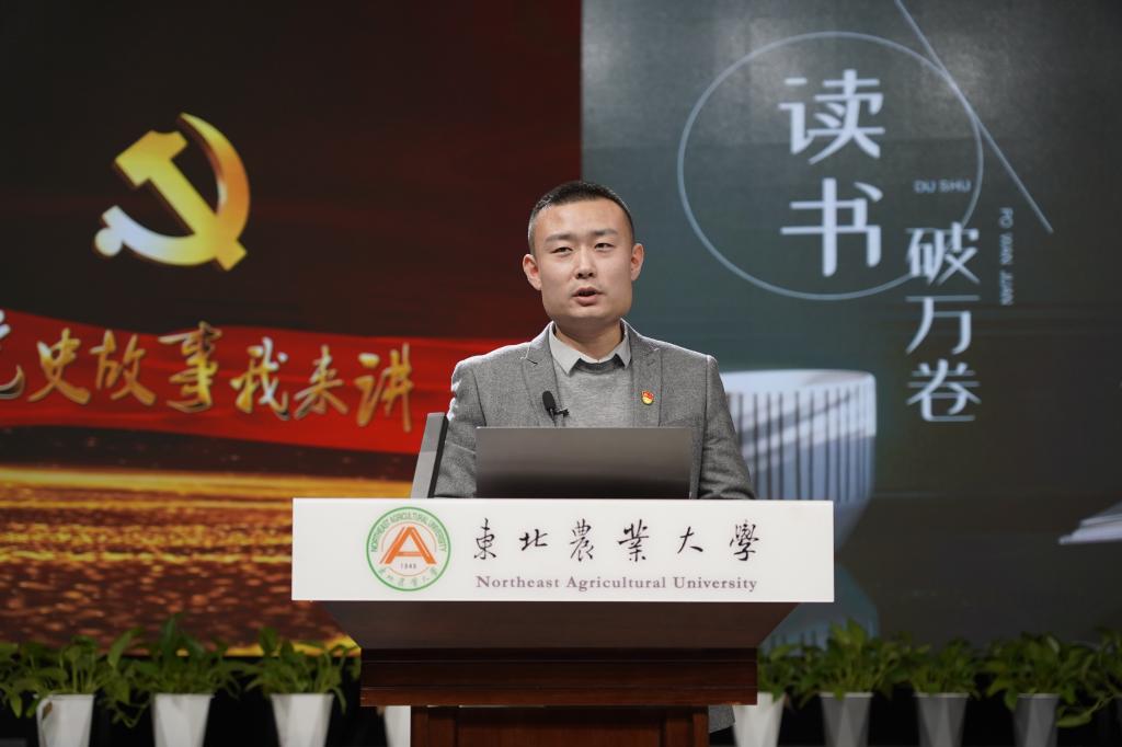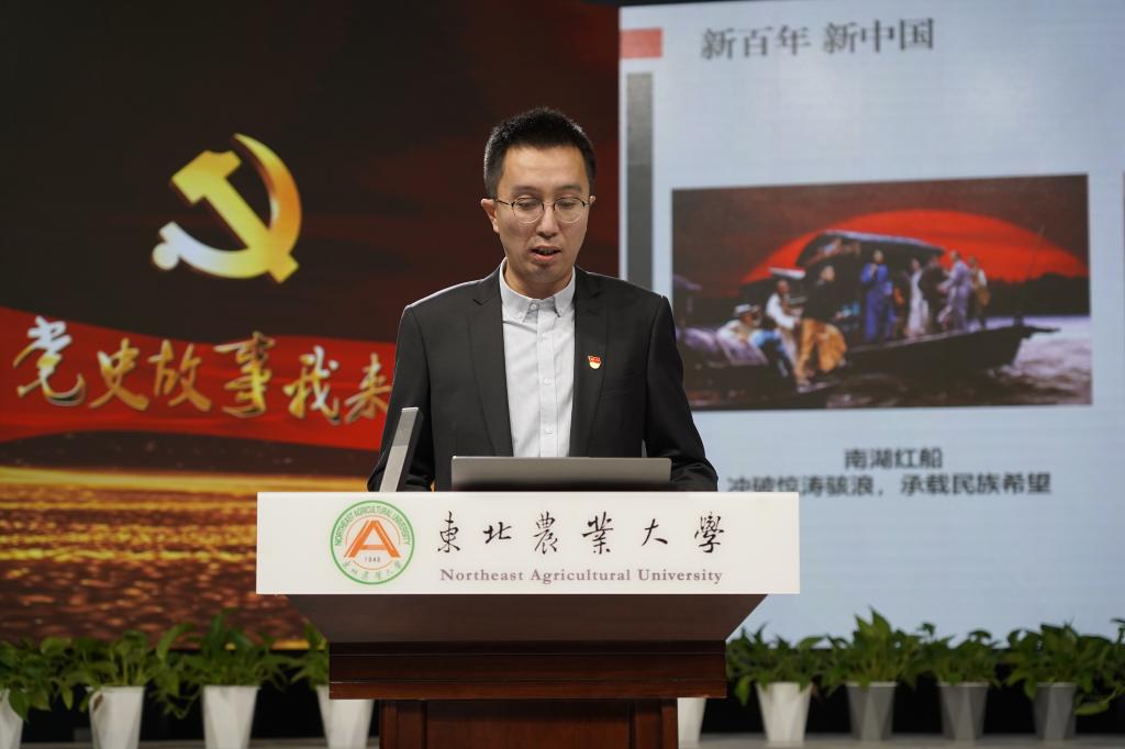 活动中,国有资产管理处崔伟涛、招生就业处王继伟、学校办公室徐文秀、学生工作部王富林、宣传部徐小添,发展规划处张铭、石仲明,学校办公室的马月璇等8为青年理论学习小组成员分别以《“抗美援朝”之战的艰难抉择》《百年恰风华,青春正当时》《中国共产党“代表中国、代表中国的未来”》《新百年,新中国》《火种:寻找中国复兴之路》《打开中国制度密码的一把钥匙》《为什么是中国》《重温恢弘史诗,凝聚奋斗伟力—小岗村的故事》为题,进行了党史故事交流分享。全体选手深情回顾了党的百年奋斗史,热情讴歌了党的光辉业绩,并结合自身本职工作,表达了从党史中总结经验、汲取智慧、凝聚力量,以新担当、新作为为东农发展建功立业,为我校世界一流学科和高水平大学建设作出更大贡献的决心。