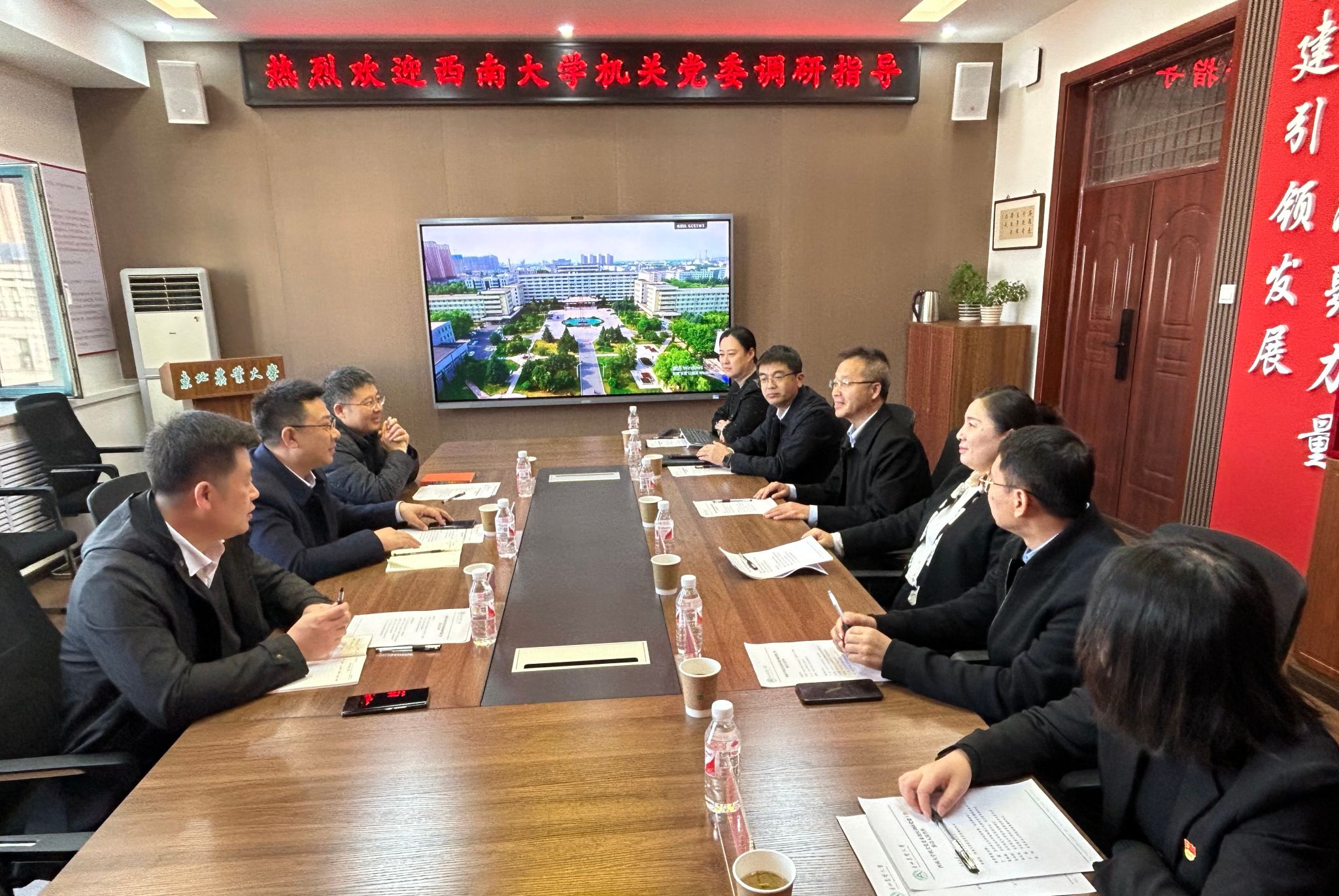 田维波对我校机关党建工作的发展给予了充分肯定,详细介绍了西南大学在作风评价工作中的典型经验。他表示,希望以此次调研交流为契机,充分发挥双方优势,加强交流合作,共同促进两校迈上新台阶。
