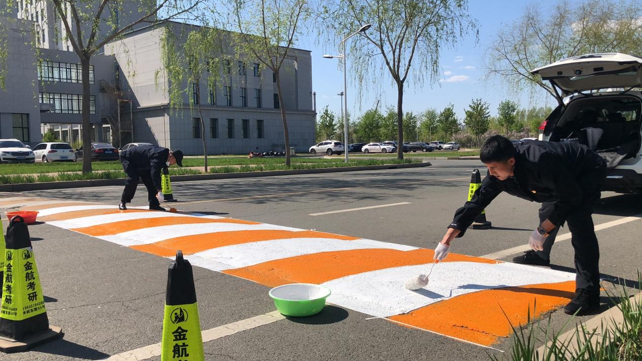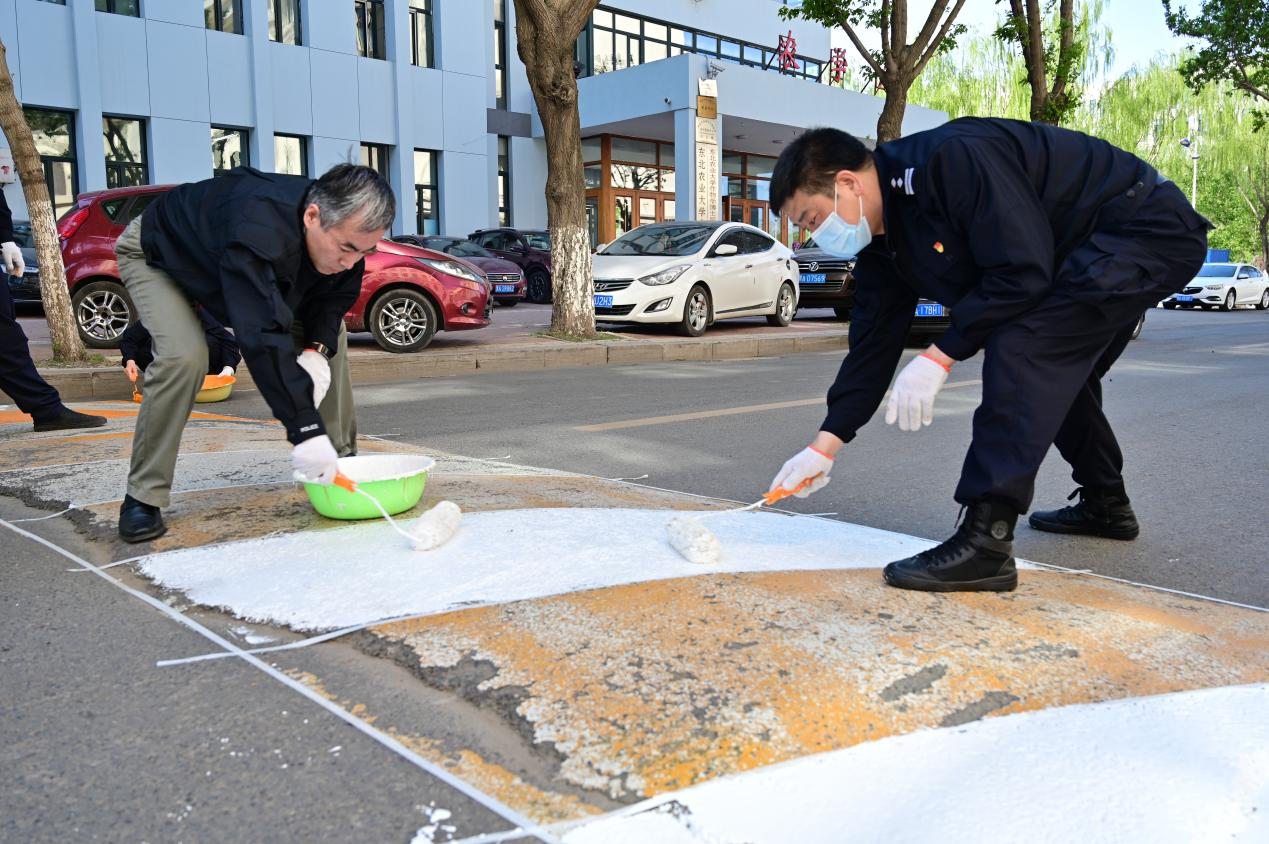 自党史学习教育开展以来,保卫处党支部结合业务工作制定了“我为群众办实事”实践活动台账。5月13日,党支部书记汪志君带领全体党员,利用一天时间对校园内39条减速带全部进行了粉刷。副校长孙占峰全程参与了此次活动。