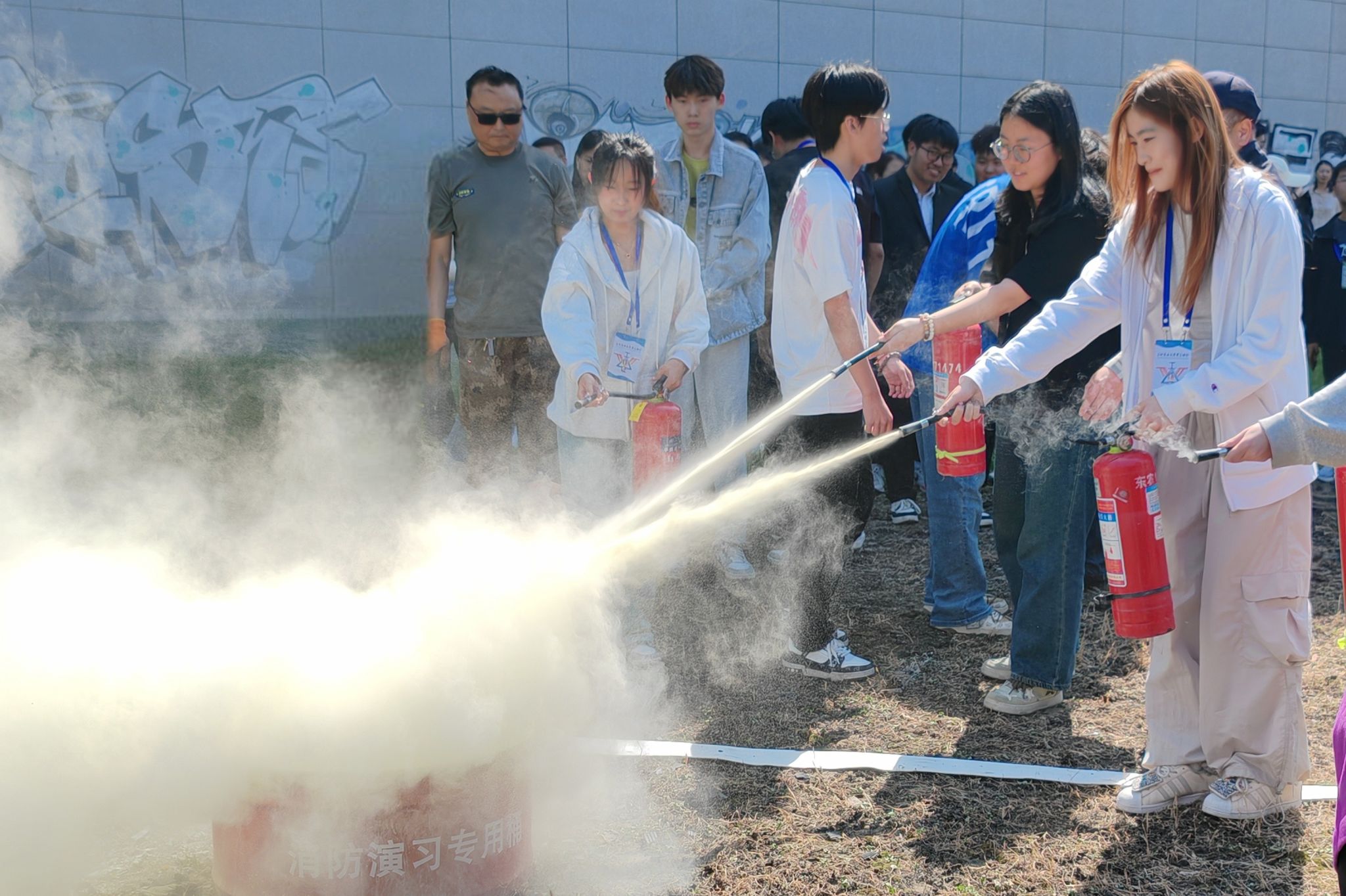 保卫处防火科杜波详细讲解了灭火器、消防水带的使用方法及扑救注意事项,并在现场设置火灾仿真场景,让师生使用干粉灭火器、水基灭火器、消防水带进行灭火实战操作,进一步提升自身防火素质与技能。