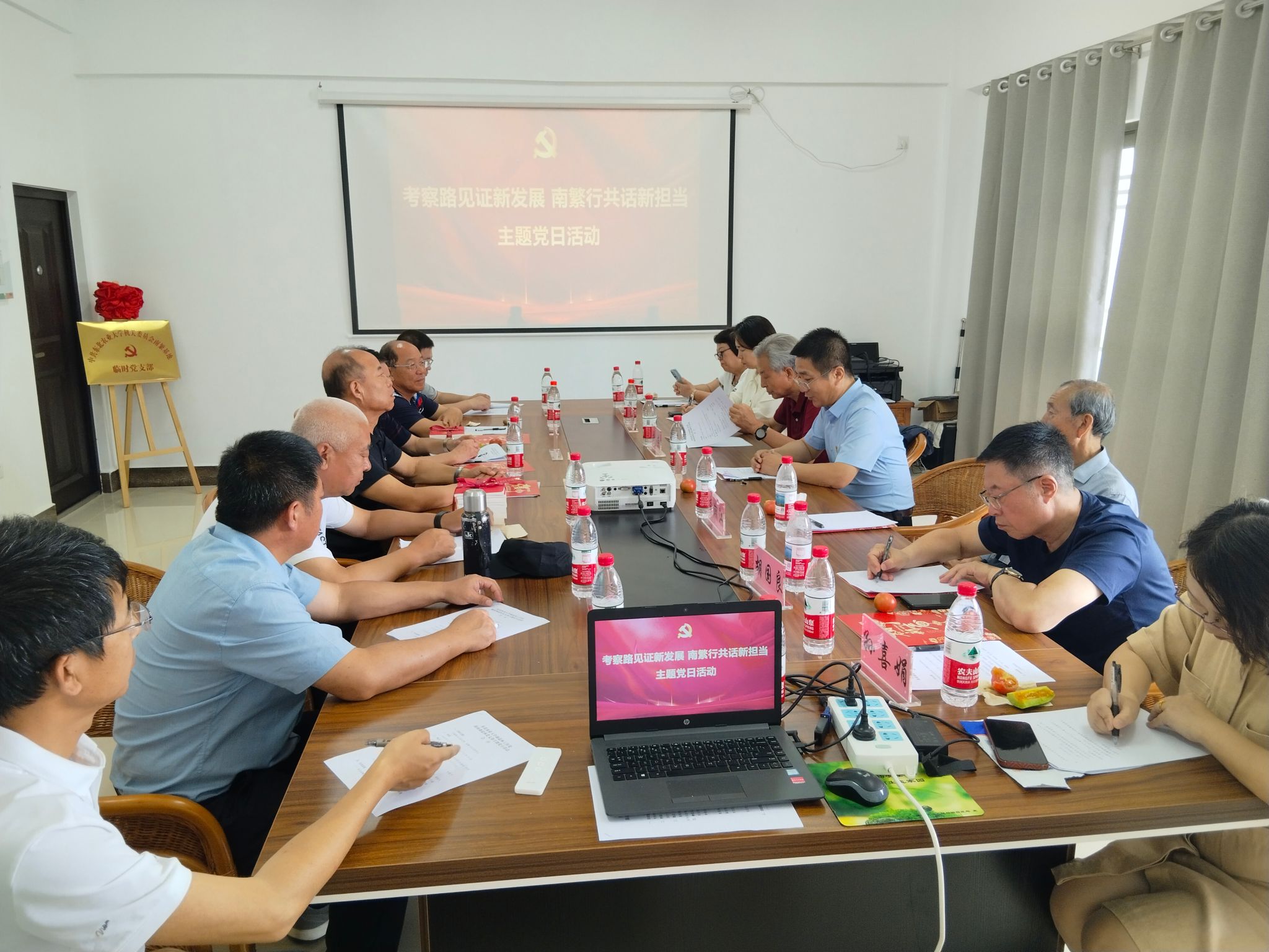 参观结束后,贺景平与机关党委南繁基地临时党支部党员开展座谈交流。他代表学校,向南繁基地临时党支部以及在琼的离退休老党员表达了诚挚问候,通报了学校上一年度在党建、学科建设、人才培养以及服务国家战略等方面取得的成绩,并为支部党员赠送了学习材料。