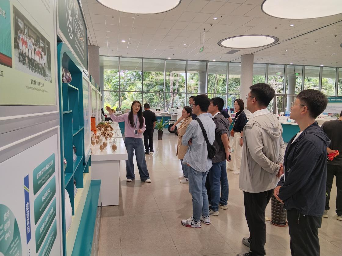在中国农业科学院国家南繁研究院一楼大厅,支部党员认真聆听了有关南繁院平台条件、南繁基地分布、科研队伍建设、人才培养及成果转化等方面的介绍,详细了解水稻、玉米、大豆、小麦等作物代表性育成品种及投入市场农业产品种类。随后,还参观了农业农村部基因编辑创新利用重点实验室和高通量植物表型平台。