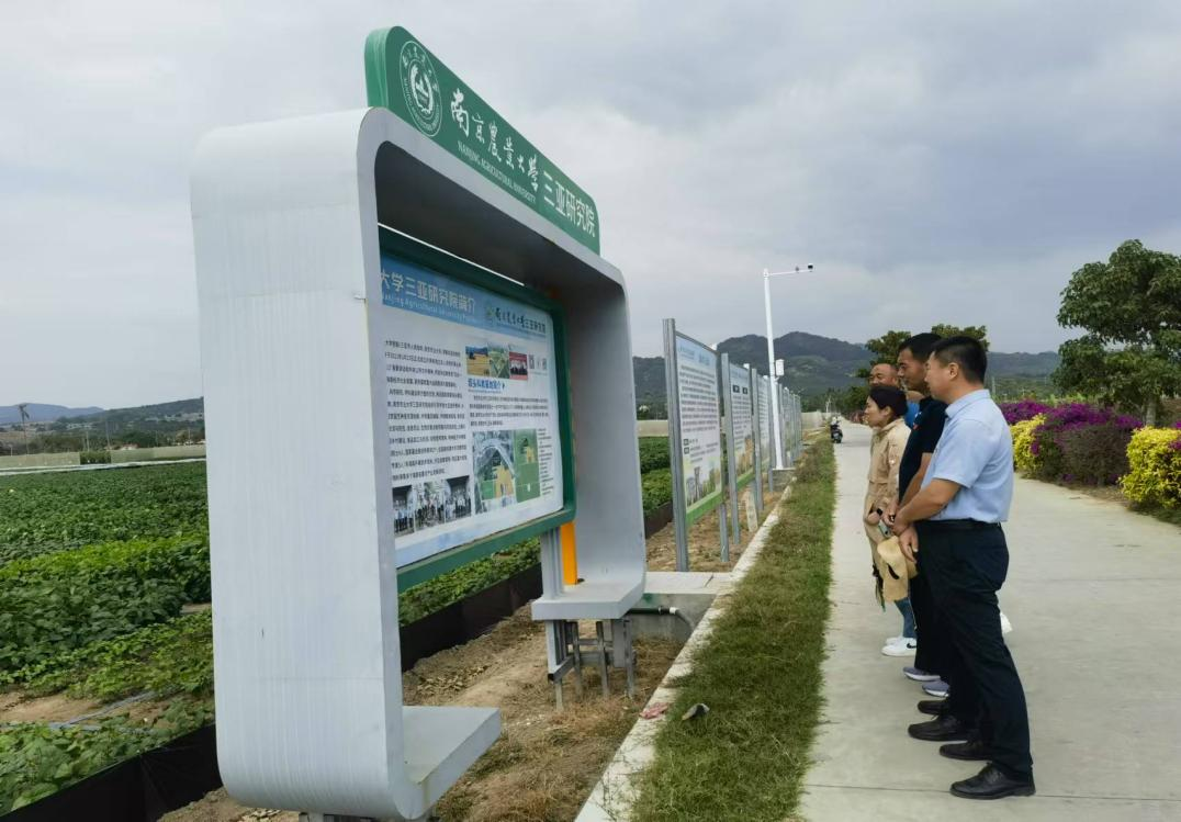 在回程过程中,全体人员还参观了坝头南繁公共试验基地,基地现已进驻中国农业科学院、中国农业大学、南京农业大学、海南大学等高校院所的研究创新团队,主要开展水稻、大豆、玉米、瓜菜等作物的基础研究、种质创新、品种培育及新品种新技术展示。