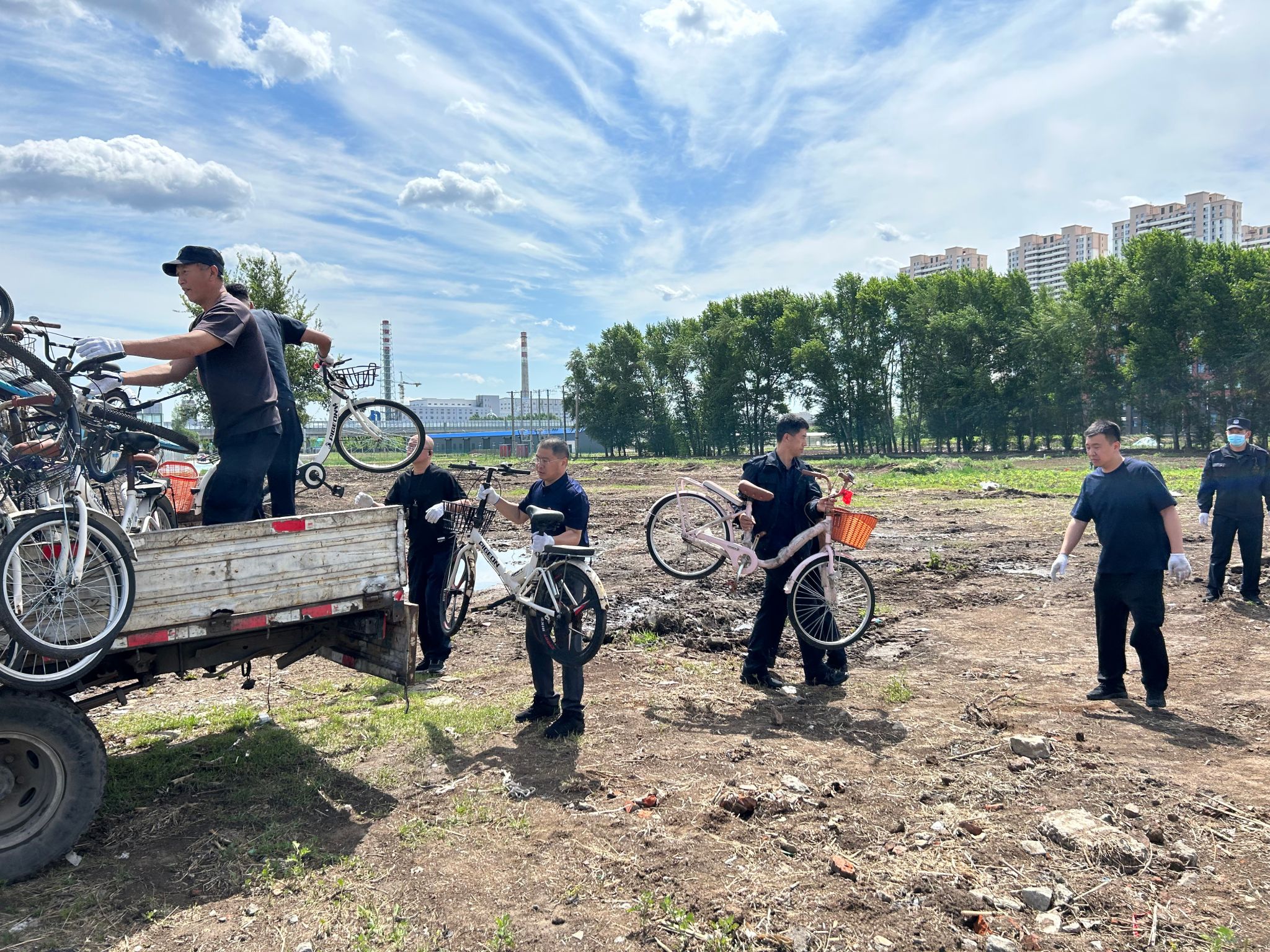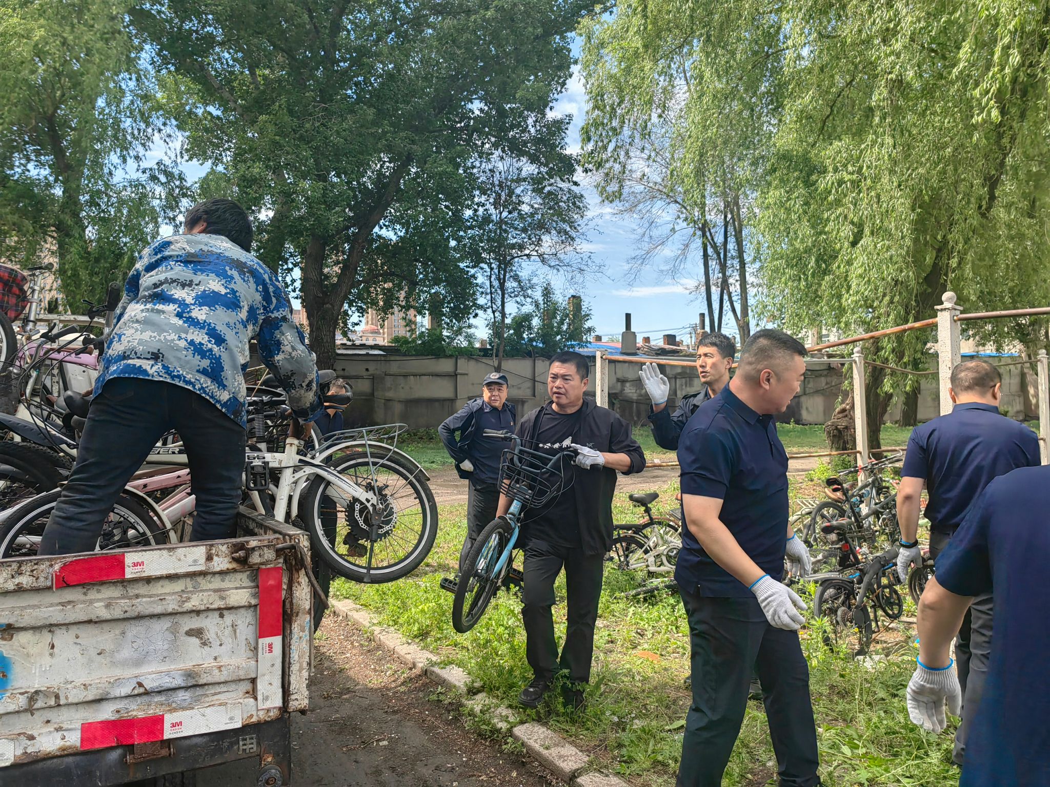 为进一步提升校园交通秩序管理水平,营造安全、文明、有序的校园环境,充分发挥党员先锋模范作用,6月6日上午,保卫处党支部组织全体党员开展了“车辆整治守初心,文明校园我先行”主题党日活动,对校园内废弃非机动车进行集中清理整治。