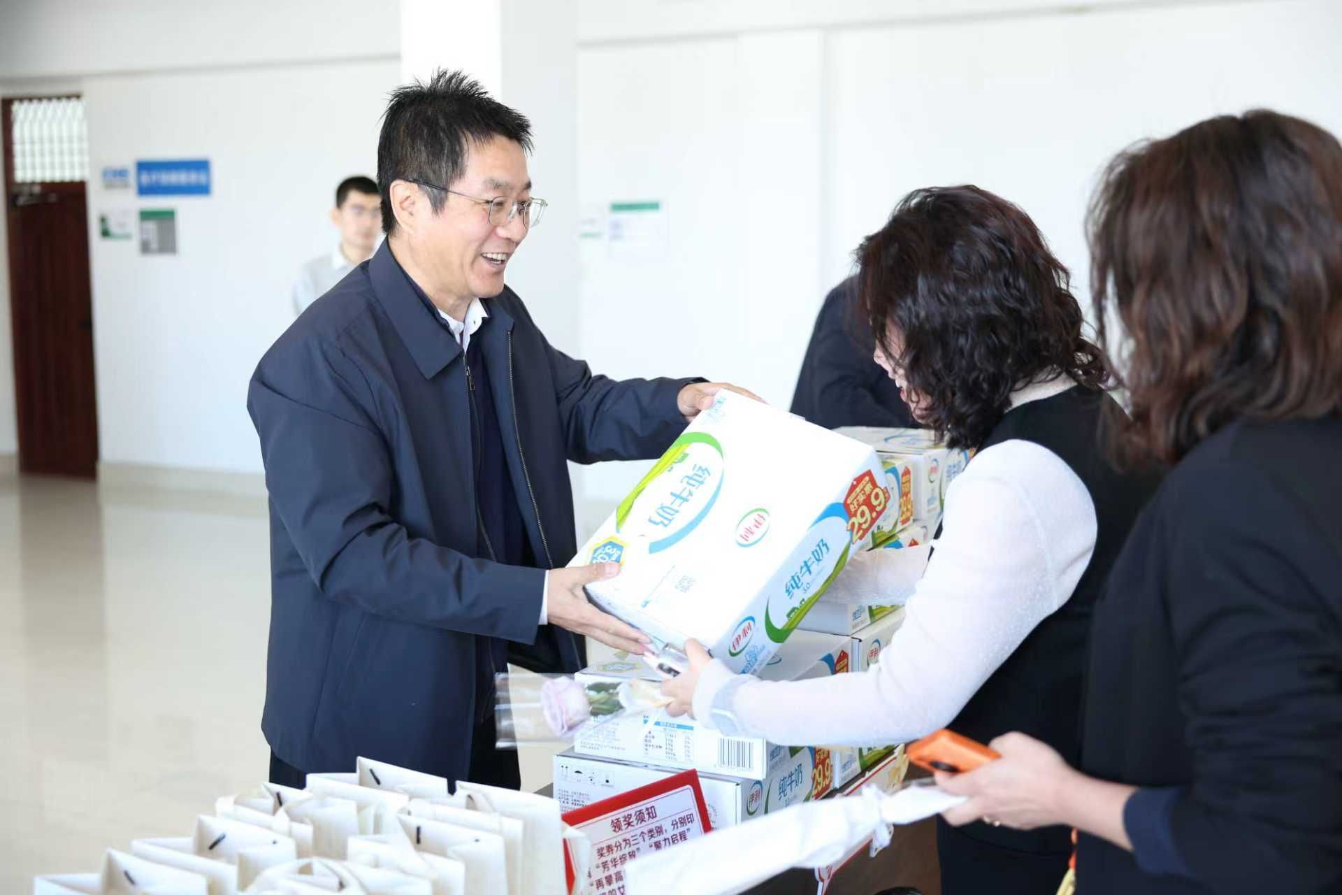 出其不意,自有惊喜。主楼八楼被欢声笑语所萦绕,贺景平副书记正带着对东农巾帼们的祝福为大家颁发奖品。活动工作组巧妙设计了三个奖项,每一个名字都藏着对女同胞们的深情期许,“芳华绽放奖”率先揭开面纱——一盒质感细腻的护手霜,紧接着是“聚力启程奖”——这个奖项别出心裁,抽中的幸运儿将获得一个美妆套盒,而最扣人心弦的当属“再攀高峰奖”——是每日增加营养的醇厚奶制品,活动现场氛围温馨热烈。